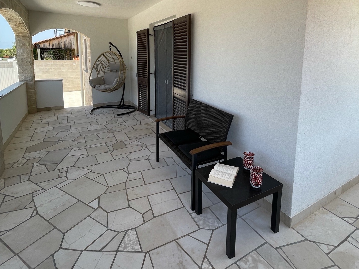 Das klimatisierte Apartment Romeo befindet sich im Erdgeschoss des Hauses. Mit der schattigen Terrasse und direktem Zugang zu dem sonnigen Poolbereich mit Außengrill habt ihr den perfekten Ausblick. Genießt die Blaue Adria und die umliegenden Natur auf der großzügig ausgelegten Terrasse. Durch die erhobene Lage des Hauses bietet die Terrasse den ganzen Tag über Schatten und auch Privatsphäre. Ihr könnt sowohl den grandiosen Sonnenaufgang, als auch den Sonnenuntergang genießen.